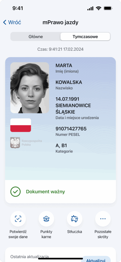 - mPrawo Jazdy – szczegóły dokumentu w mObywatel
